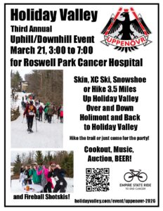 Holiday Valley Uphill/Downhill Race to Benefit Cancer Research Through HV Ride for Roswell Team. Skin Up Holiday Valley Across to Holimont, Down Sunset, Up Sunset, and Back over to HV